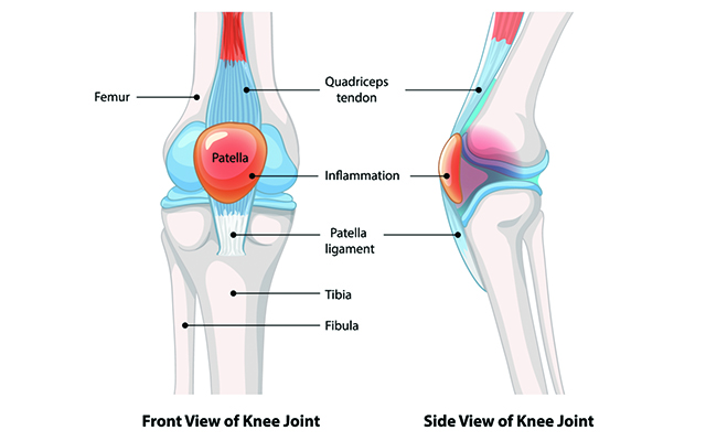 과도한 무릎의 사용, 대퇴사두근과 햄스트링근육의 불균형, 하지의 비정상 정렬, 퇴화되지 않고 남은 추벽, 외상 등이 원인이 되어 통증을 유발합니다. 슬개건염이 동반되는 경우도 있으며, 연골연화증, 추벽증후군 등이 이 질환군에 속합니다.