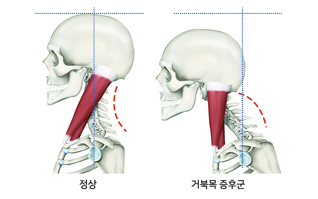 머리가 앞으로 쏠리고 목이 튀어나오는 일자목/거북목을