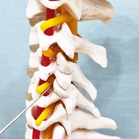 내측 분지 신경차단술은 척추뼈를 이어주는 후관절을 담당하는 내측 분지 신경을 타겟으로 주사합니다.